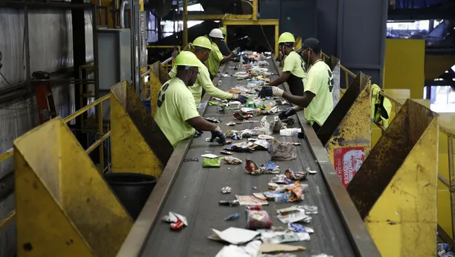 Recyclables such as paper, cardboard, glass, plastic, wood, roofing, concrete and metal